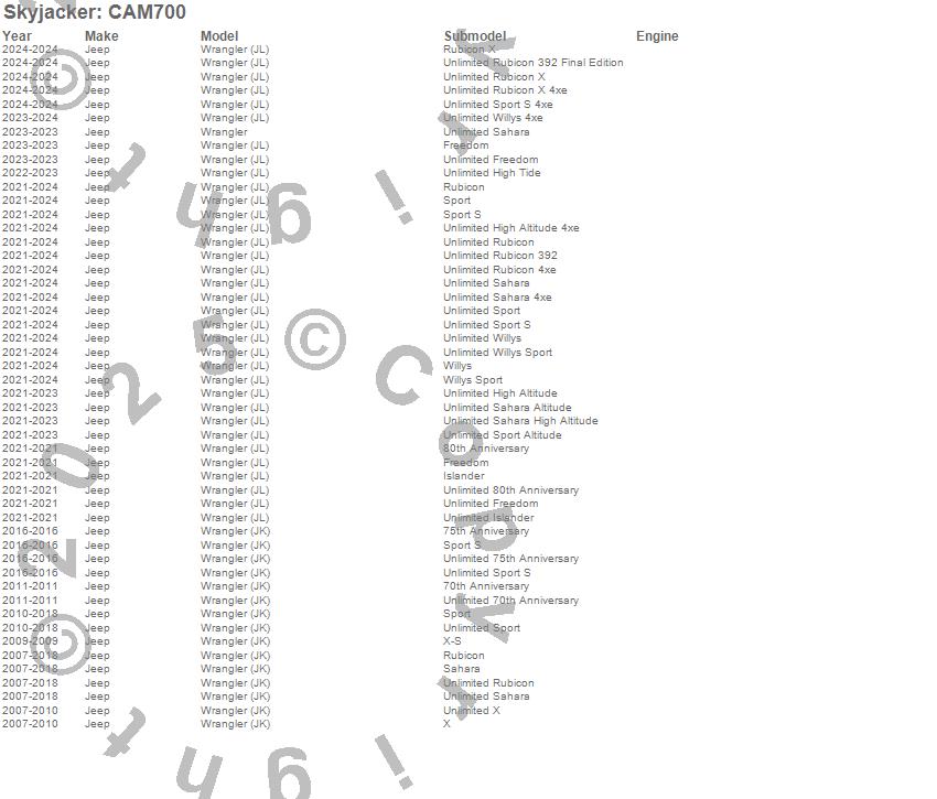 Below is an abbreviated list of applications for the Cam Bolt.Wrangler (JK), Jeep, 2013, 2012, 2011, 2010, 2009, 2008, 2007