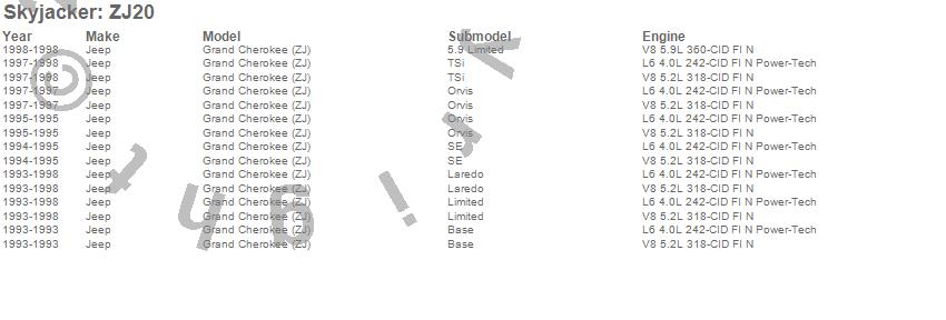 Below is an abbreviated list of applications for the Polyurethane Value Suspension Lift Kit.Grand Cherokee (ZJ), Jeep, 1998, 1997, 1996, 1995, 1994, 1993