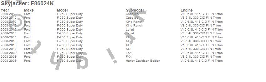 Below is an abbreviated list of applications for the Suspension Lift Kit.F-250 Super Duty Pickup, Ford, 2010, 2009, 2008