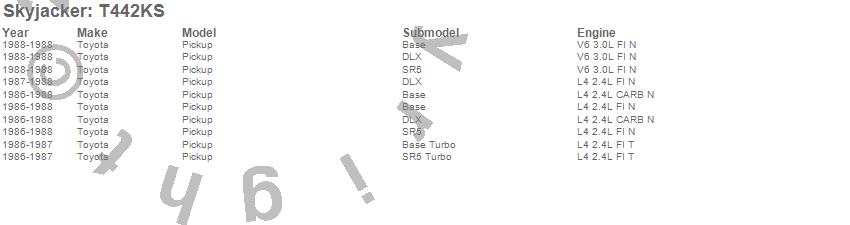 Below is an abbreviated list of applications for the Suspension Lift Kit.Pickup, Toyota, 1988, 1987, 1986