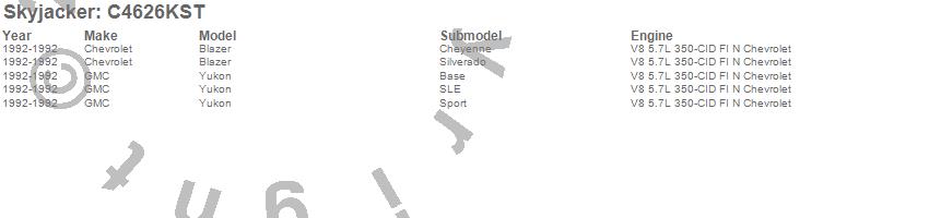 Below is an abbreviated list of applications for the Suspension Lift Kit.Blazer, Yukon, Chevrolet, GMC, 1992
