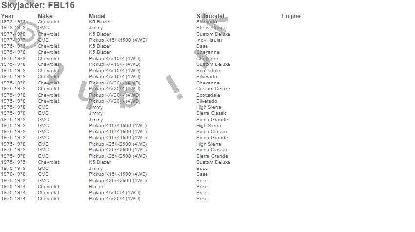 Brand: SkyjackerPart Number: FBL16Brake Hose Type: 7200 GVWR Or Less - Lift Height 3 in. - 4 in. - PairUPC: 803696130569