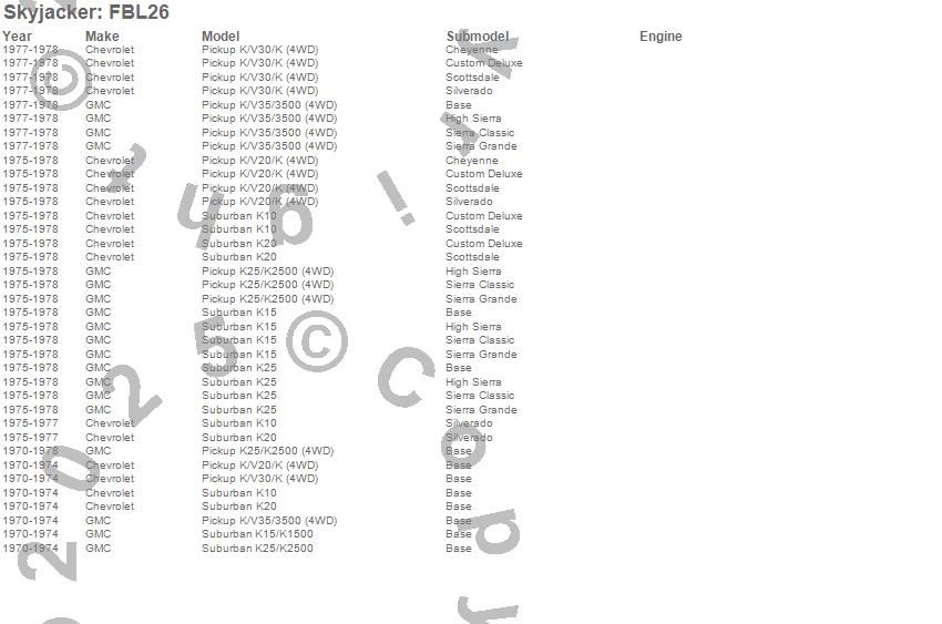 Brand: SkyjackerPart Number: FBL26Brake Hose Type: 8600 GVWR Or Greater - Lift Height 3 in. - 4 in. - PairUPC: 803696130705