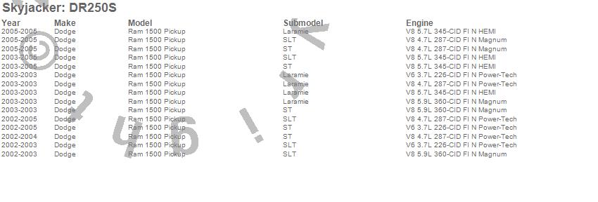 Brand: SkyjackerPart Number: DR250SLeaf Spring Type: Lift Height 5 in. - SingleUPC: 803696171029