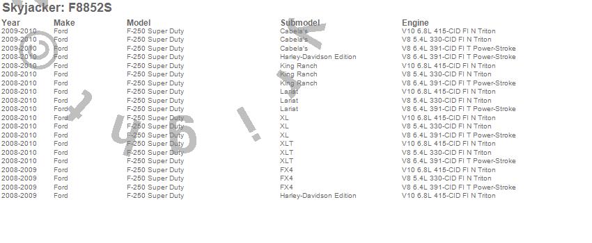 Brand: SkyjackerPart Number: F8852SLift Kit-Suspension Component Type: 8.5 in. Lift - System BoxUPC: 803696195247