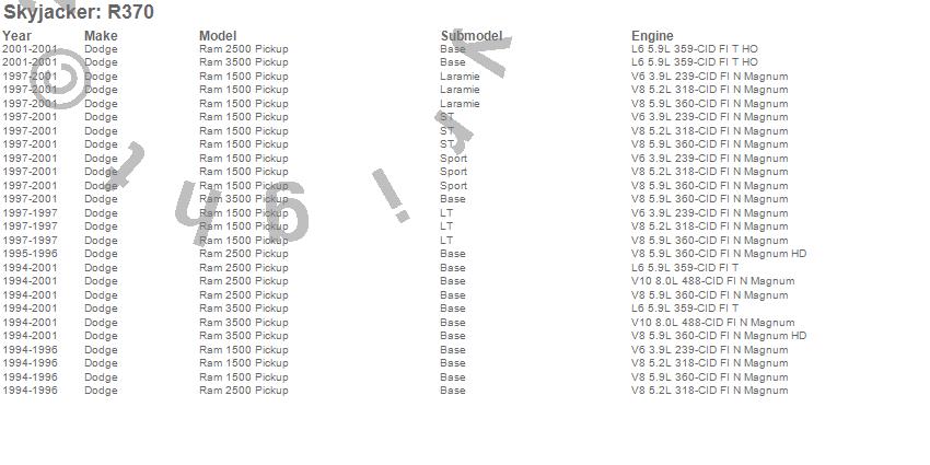 Below is an abbreviated list of applications for the Heavy Duty Add-A-Leaf Rear.Ram 1500 Pickup, Ram 2500, Ram 2500 Pickup, Ram 3500 Pickup, Dodge, 2001, 2000, 1999, 1998, 1997, 1996, 1995, 1994