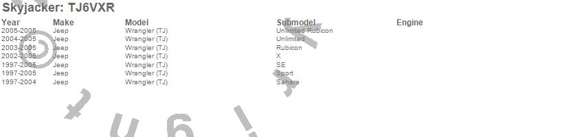Brand: SkyjackerPart Number: TJ6VXRControl Arm Mount Type: Upper RearUPC: 803696185095