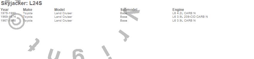 Below is an abbreviated list of applications for the Component Box For PN[L20KS/L40KS/L24KS].Land Cruiser, Toyota, 1980, 1979, 1978, 1977, 1976, 1975, 1974, 1973, 1972, 1971, 1970, 1969, 1968, 1967