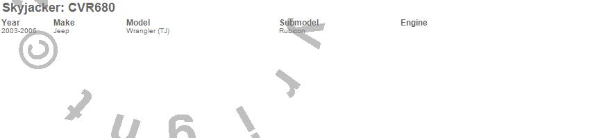Brand: SkyjackerPart Number: CVR680Drive Shaft Type: Rear - ReplacementUPC: 803696180120