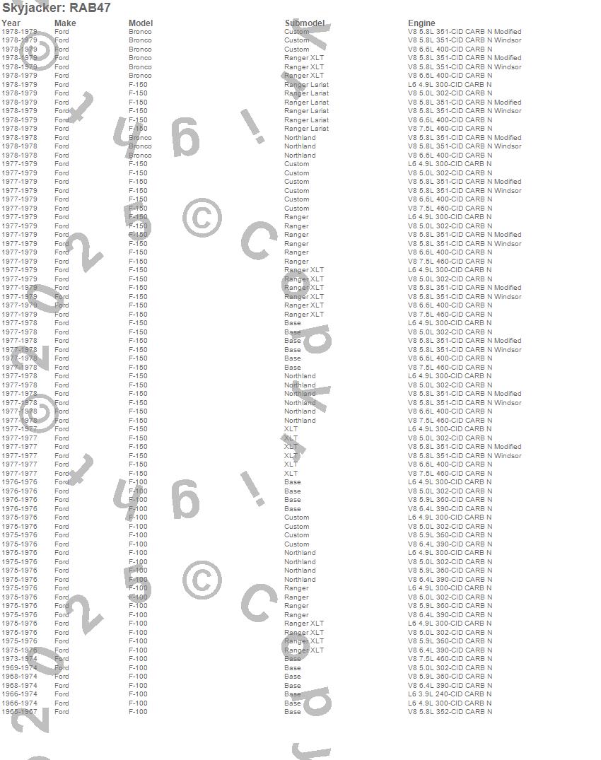 Below is an abbreviated list of applications for the Radius Arm Drop Bracket.Bronco, F-100 Pickup, F-150 Pickup, Ford, 1979, 1978, 1977, 1976, 1975, 1974, 1973, 1972, 1971, 1970, 1969, 1968, 1967, 1966, 1965