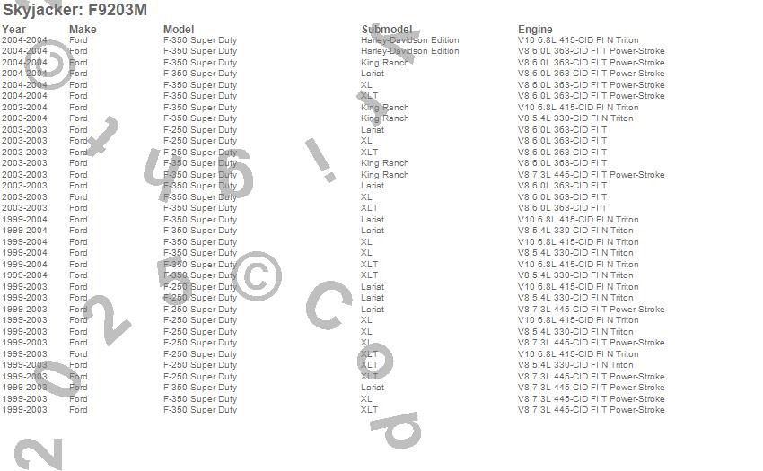 Below is an abbreviated list of applications for the Component Box For PN[F9203K].F-250 Super Duty Pickup, F-350 Super Duty Pickup, Ford, 2004, 2003, 2002, 2001, 2000, 1999