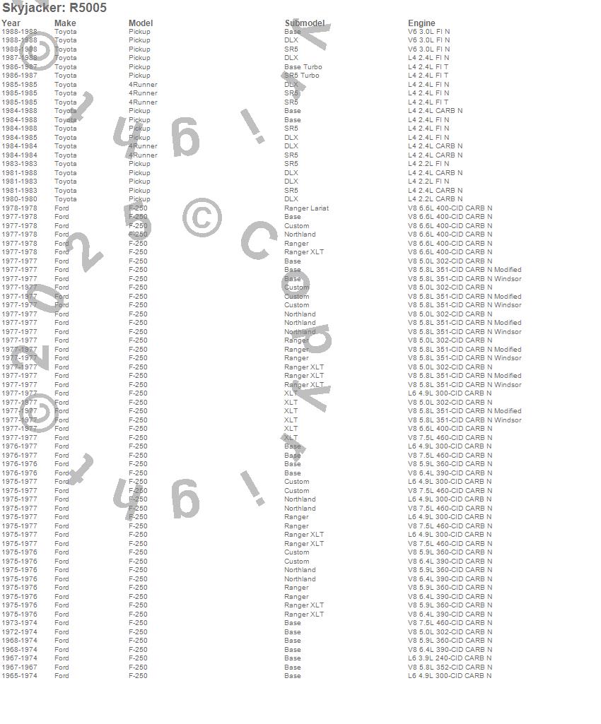 Below is an abbreviated list of applications for the Softride Add-A-Leaf.4Runner, F-250 Pickup, Pickup, Ford, Toyota, 1988, 1987, 1986, 1985, 1984, 1983, 1982, 1981, 1980, 1977, 1976, 1975, 1974, 1973, 1972