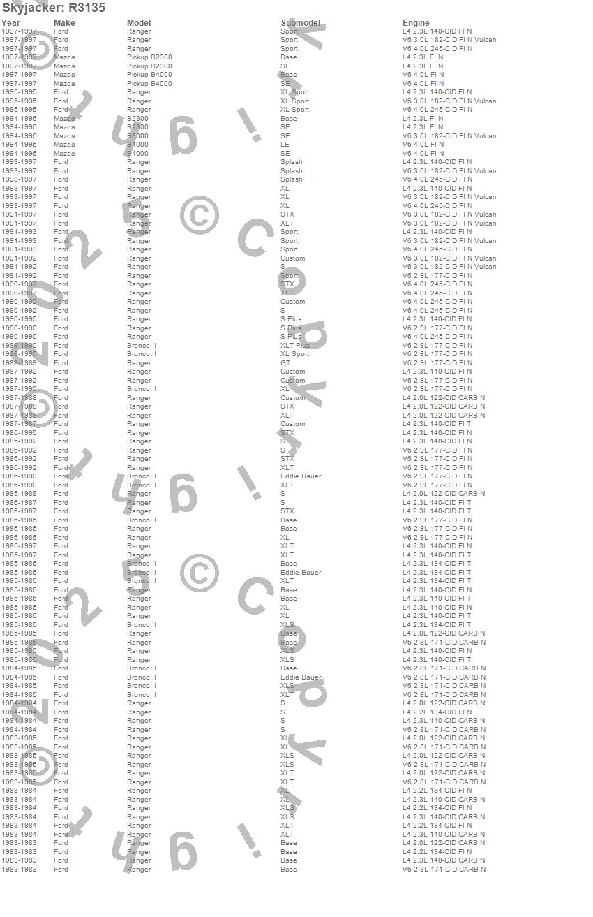 Below is an abbreviated list of applications for the Softride Add-A-Leaf.B2300, B3000, B4000, Bronco II, Ranger, Ford, Mazda, 1997, 1996, 1995, 1994, 1993, 1992, 1991, 1990, 1989, 1988, 1987, 1986, 1985
