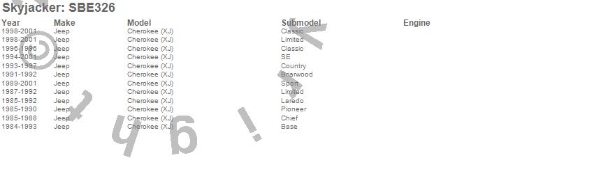 Below is an abbreviated list of applications for the Sway Bar Extended End Links Disconnect.Cherokee (XJ), Jeep, 2001, 2000, 1999, 1998, 1997, 1996, 1995, 1994, 1993, 1992, 1991, 1990, 1989, 1988, 1987, 1986, 1985, 1984