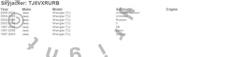 Brand: SkyjackerPart Number: TJ6VXRURBControl Arm Mount Type: Upper Rear - 6 in. - 8 in. LiftUPC: 803696187457
