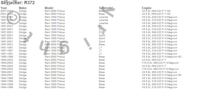 Below is an abbreviated list of applications for the Heavy Duty Add-A-Leaf Rear.Ram 1500 Pickup, Ram 2500, Ram 2500 Pickup, Ram 3500 Pickup, Dodge, 2002, 2001, 2000, 1999, 1998, 1997, 1996, 1995, 1994
