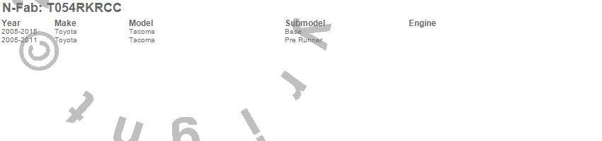 Brand: N-FabPart Number: T054RKRCCRocker Panel Guard Type: Textured BlackUPC: 843206118212