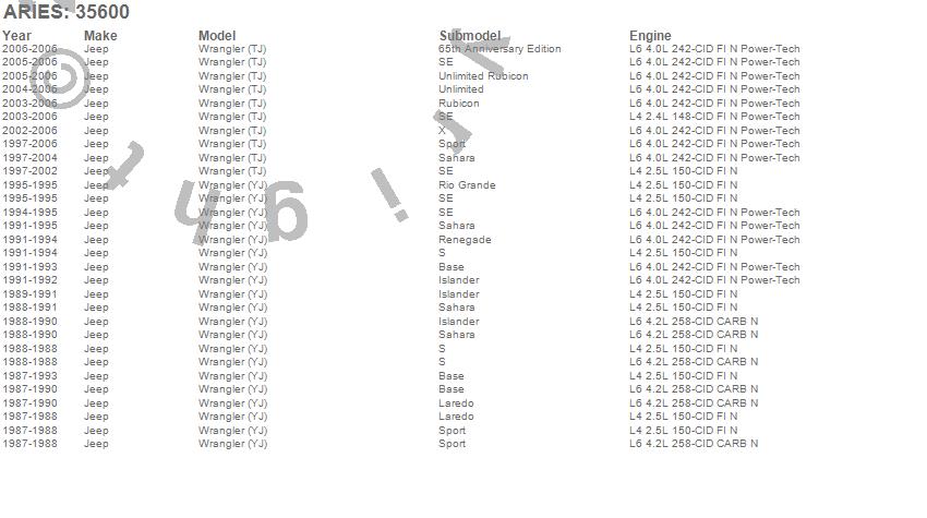 Below is an abbreviated list of applications for the 3 in. Round Side Bars.Wrangler (TJ), Wrangler (YJ), Jeep, 2006, 2005, 2004, 2003, 2002, 2001, 2000, 1999, 1998, 1997, 1995, 1994, 1993, 1992, 1991, 1990, 1989