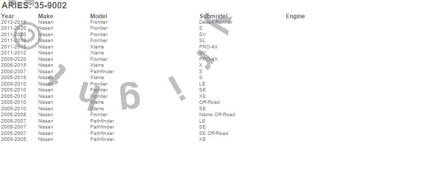 Below is an abbreviated list of applications for the Bull Bar.Frontier, Pathfinder, Xterra, Nissan, 2020, 2019, 2018, 2017, 2016, 2015, 2014, 2013, 2012, 2011, 2010, 2009, 2008, 2007, 2006, 2005