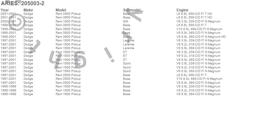 Below is an abbreviated list of applications for the 3 in. Round Side Bars.Ram 1500, Ram 2500, Ram 3500, Dodge, 2001, 2000, 1999, 1998, 1997, 1996, 1995