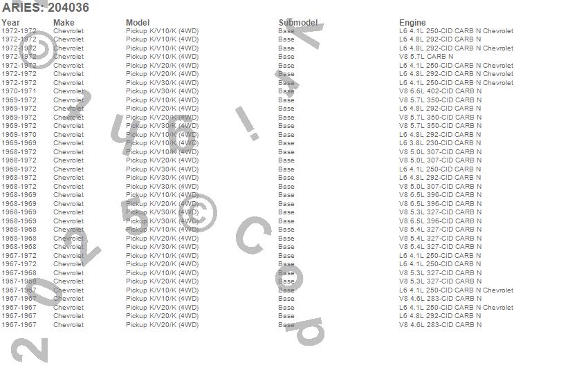 Below is an abbreviated list of applications for the 3 in. Round Side Bars.K10 Pickup, K20 Pickup, K30 Pickup, Chevrolet, 1972, 1971, 1970, 1969, 1968, 1967