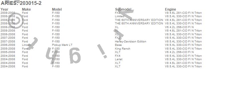 Below is an abbreviated list of applications for the 3 in. Round Side Bars.F-150, Mark LT, Ford, Lincoln, 2008, 2007, 2006, 2005, 2004