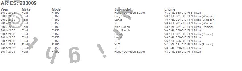 Below is an abbreviated list of applications for the 3 in. Round Side Bars.F-150, Ford, 2003, 2002, 2001