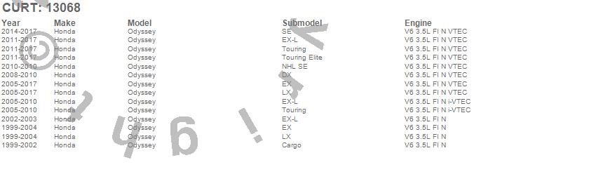 Below is an abbreviated list of applications for the Class III 2 in. Receiver Hitch.Odyssey, Honda, 2017, 2016, 2015, 2014, 2013, 2012, 2011, 2010, 2009, 2008, 2007, 2006, 2005, 2004, 2003, 2002, 2001, 2000