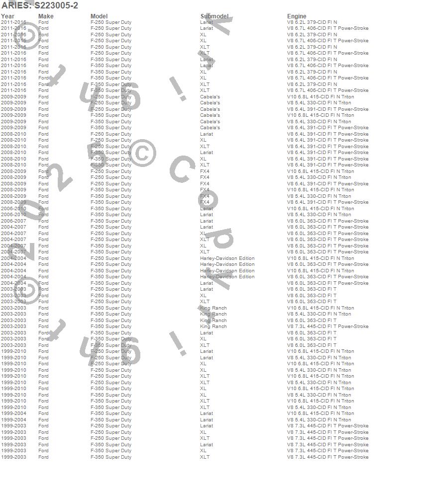 Below is an abbreviated list of applications for the The Standard 4 in. Oval Nerf Bar.F-250 Super Duty, F-350 Super Duty, Ford, 2016, 2015, 2014, 2013, 2012, 2011, 2010, 2009, 2008, 2007, 2006, 2005, 2004, 2003, 2002, 2001, 2000