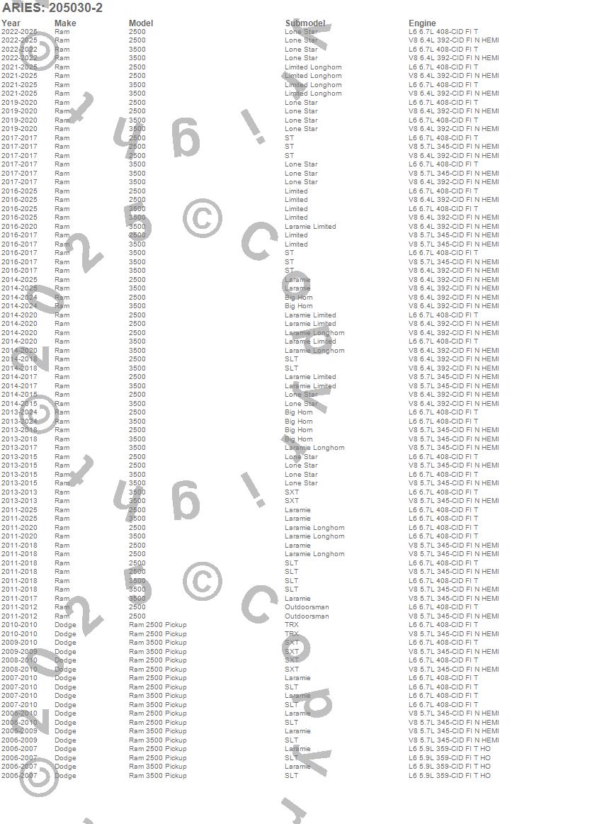 Below is an abbreviated list of applications for the 3 in. Round Side Bars.2500, 3500, Ram 2500, Ram 3500, Dodge, Ram, 2026, 2025, 2024, 2023, 2022, 2021, 2020, 2019, 2018, 2017, 2016, 2015, 2014, 2013