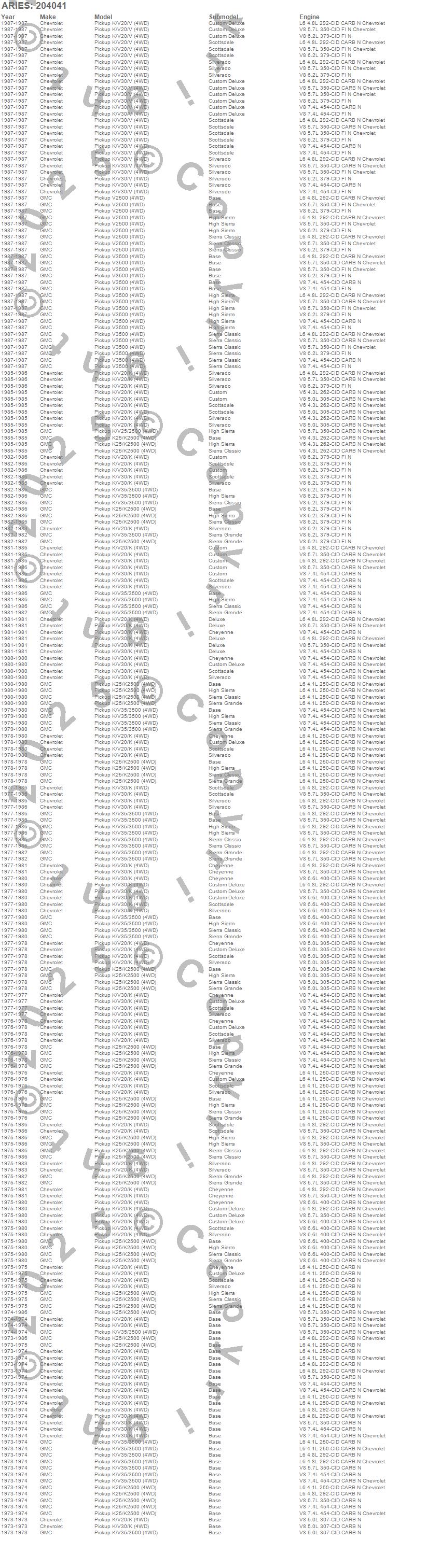 Below is an abbreviated list of applications for the 3 in. Round Side Bars.K20 Pickup, K25 Pickup, K25/K2500 Pickup, K2500 Pickup, K30 Pickup, K35 Pickup, K35/K3500 Pickup, K3500 Pickup, Chevrolet, GMC, 1986, 1985, 1984, 1983, 1982, 1981, 1980, 1979, 1978, 1977