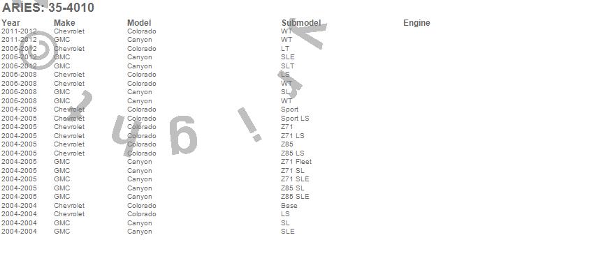 Below is an abbreviated list of applications for the Bull Bar.Canyon, Colorado, Chevrolet, GMC, 2012, 2011, 2010, 2009, 2008, 2007, 2006, 2005, 2004
