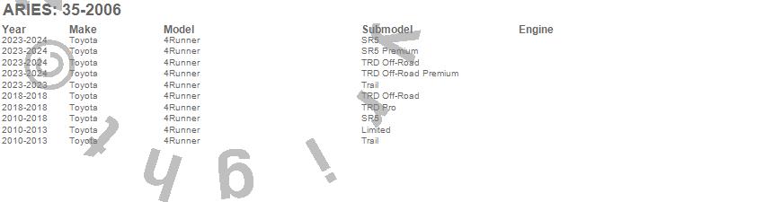 Below is an abbreviated list of applications for the Bull Bar.4Runner, Toyota, 2024, 2023, 2018, 2017, 2016, 2015, 2014, 2013, 2012, 2011, 2010