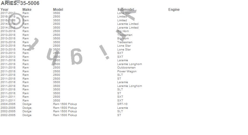 Below is an abbreviated list of applications for the Bull Bar.2500, 3500, Ram 1500, Dodge, Ram, 2018, 2017, 2016, 2015, 2014, 2013, 2012, 2011, 2005, 2004, 2003, 2002