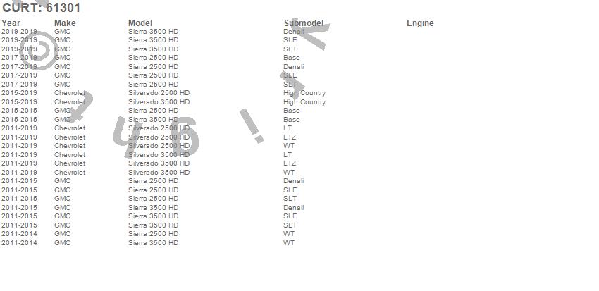 Brand: CURTPart Number: 61301Gooseneck Trailer Hitch Mount Kit Type: Incl. Grade 8 Hardware - Installation Instructions - No Drilling Req. - 30000lbs.lbs. Gross Trailer WeightUPC: 612314613014