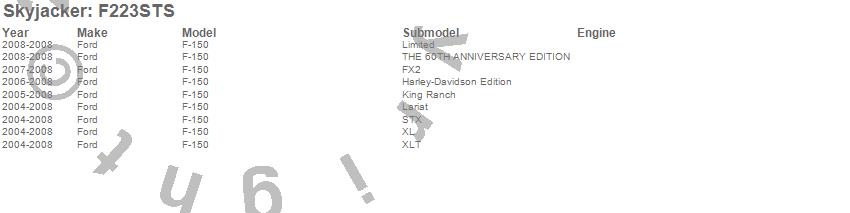 Below is an abbreviated list of applications for the Strut Assembly Kit.F-150 Pickup, Ford, 2008, 2007, 2006, 2005, 2004