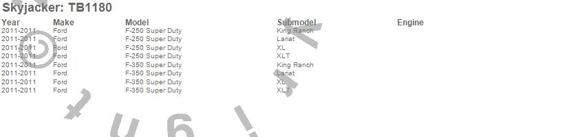 Brand: SkyjackerPart Number: TB1180Track Bar Bracket Type: Front - 8.5 in. LiftUPC: 803696208664