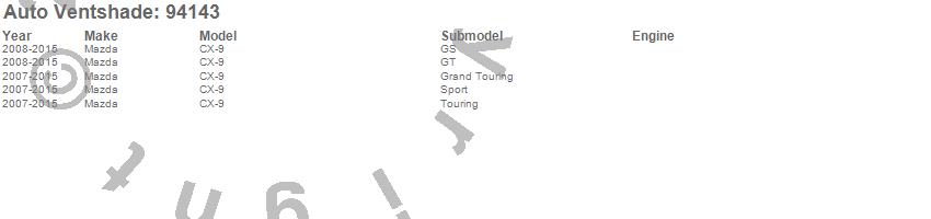 Below is an abbreviated list of applications for the Ventvisor Deflector 4 pc..CX-9, Mazda, 2015, 2014, 2013, 2012, 2011, 2010, 2009, 2008, 2007