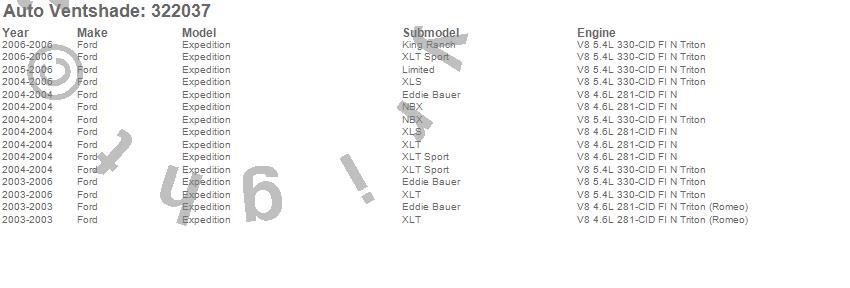 Below is an abbreviated list of applications for the Aeroskin Smoke Hood Protector.Expedition, Ford, 2006, 2005, 2004, 2003