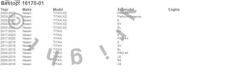 Below is an abbreviated list of applications for the EZ Fold Soft Tri-Fold Tonneau Cover.TITAN, TITAN XD, Nissan, 2024, 2023, 2022, 2021, 2020, 2019, 2018, 2017, 2015, 2014, 2013, 2012, 2011, 2010, 2009, 2008, 2007