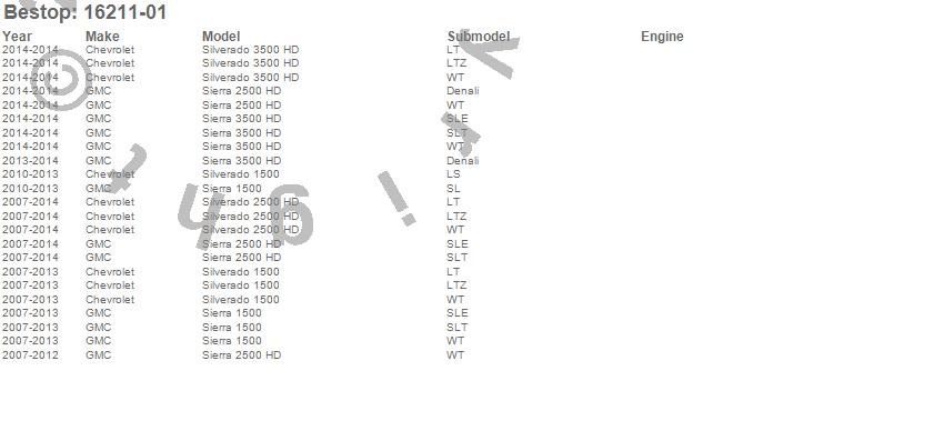 Below is an abbreviated list of applications for the EZ Fold Soft Tri-Fold Tonneau Cover.Sierra 1500, Sierra 2500 HD, Sierra 3500 HD, Silverado 1500, Silverado 2500 HD, Silverado 3500 HD, Chevrolet, GMC, 2014, 2013, 2012, 2011, 2010, 2009, 2008, 2007