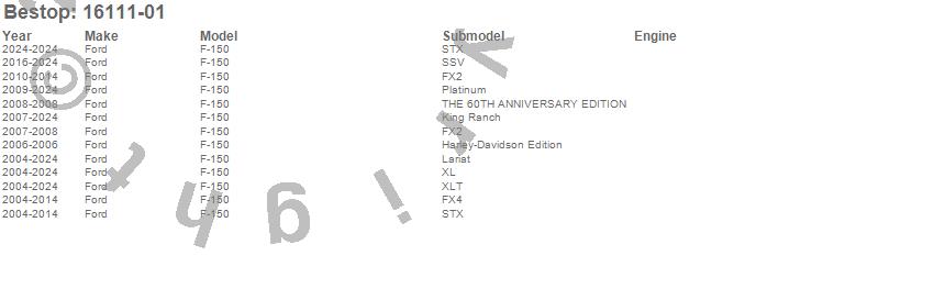 Brand: BestopPart Number: 16111-01Tonneau Cover Type: BlackUPC: 077848090630