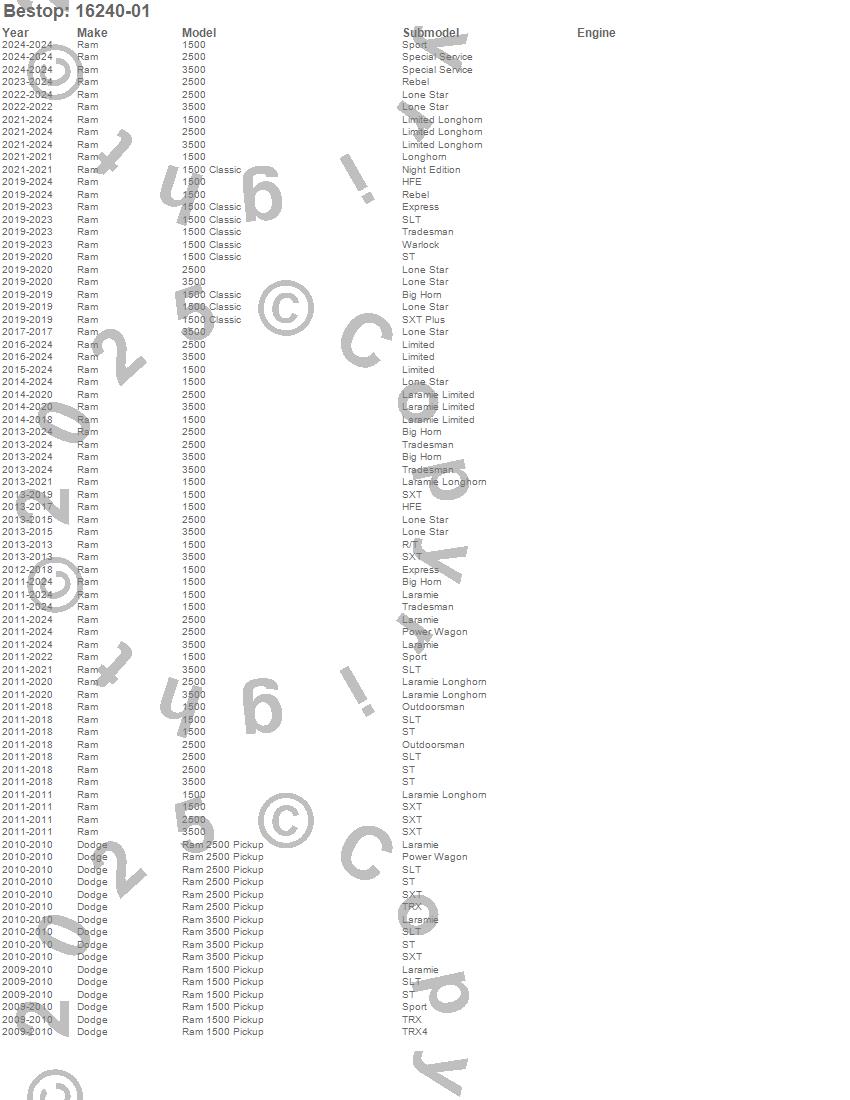 Below is an abbreviated list of applications for the EZ Fold Soft Tri-Fold Tonneau Cover.1500, 1500 Classic, 2500, 3500, Ram 1500, Ram 2500, Ram 3500, Dodge, Ram, 2025, 2024, 2023, 2022, 2021, 2020, 2019, 2018, 2017, 2016, 2015