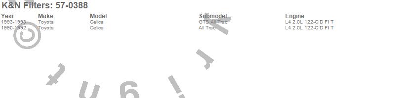 Below is an abbreviated list of applications for the 57i Series Induction Kit.Celica, Toyota, 1993, 1992, 1991, 1990