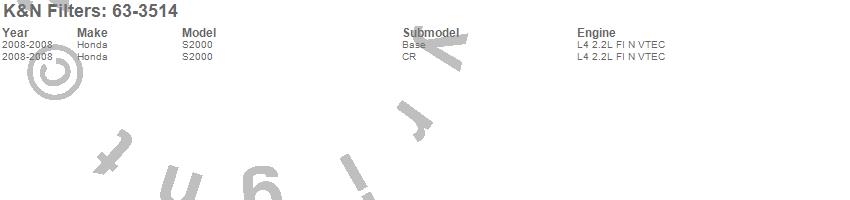 Below is an abbreviated list of applications for the 63 Series Aircharger Kit.S2000, Honda, 2008