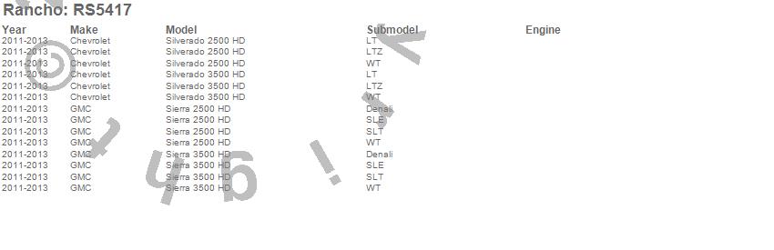 Below is an abbreviated list of applications for the RS5000 Steering Damper.SIERRA 2500 HD, SIERRA 2500 HD (Canadian), SIERRA 3500 HD, SIERRA 3500 HD (Canadian), SILVERADO 2500 HD, SILVERADO 2500 HD (Canadian), SILVERADO 3500 HD, SILVERADO 3500 HD (Canadian), CHEVROLET, GMC, 2013, 2012, 2011