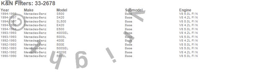 Below is an abbreviated list of applications for the Air Filter.400E, 400SE, 400SEL, 500E, 500SEL, 500SL, E420, E500, S420, S500, SL500, Mercedes-Benz, 1999, 1997, 1996, 1995, 1994, 1993, 1992, 1990