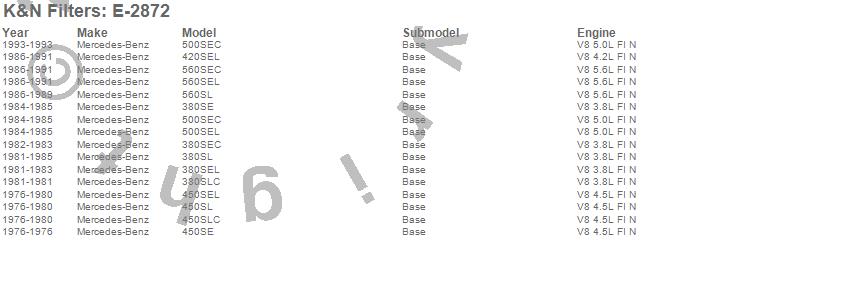 Below is an abbreviated list of applications for the Air Filter.380SE, 380SEC, 380SEL, 380SL, 380SLC, 420SEL, 450SE, 450SEL, 450SL, 450SLC, 500SEC, 500SEL, 560SEC, 560SEL, 560SL, Mercedes-Benz, 1993, 1991, 1990, 1989