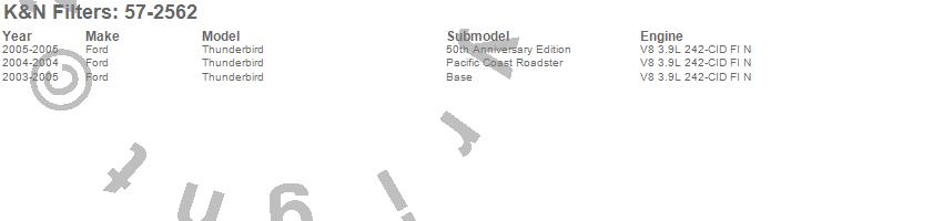 Below is an abbreviated list of applications for the Filtercharger Injection Performance Kit.Thunderbird, Ford, 2005, 2004, 2003