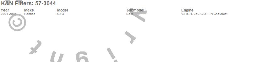 Below is an abbreviated list of applications for the Filtercharger Injection Performance Kit.GTO, Pontiac, 2004